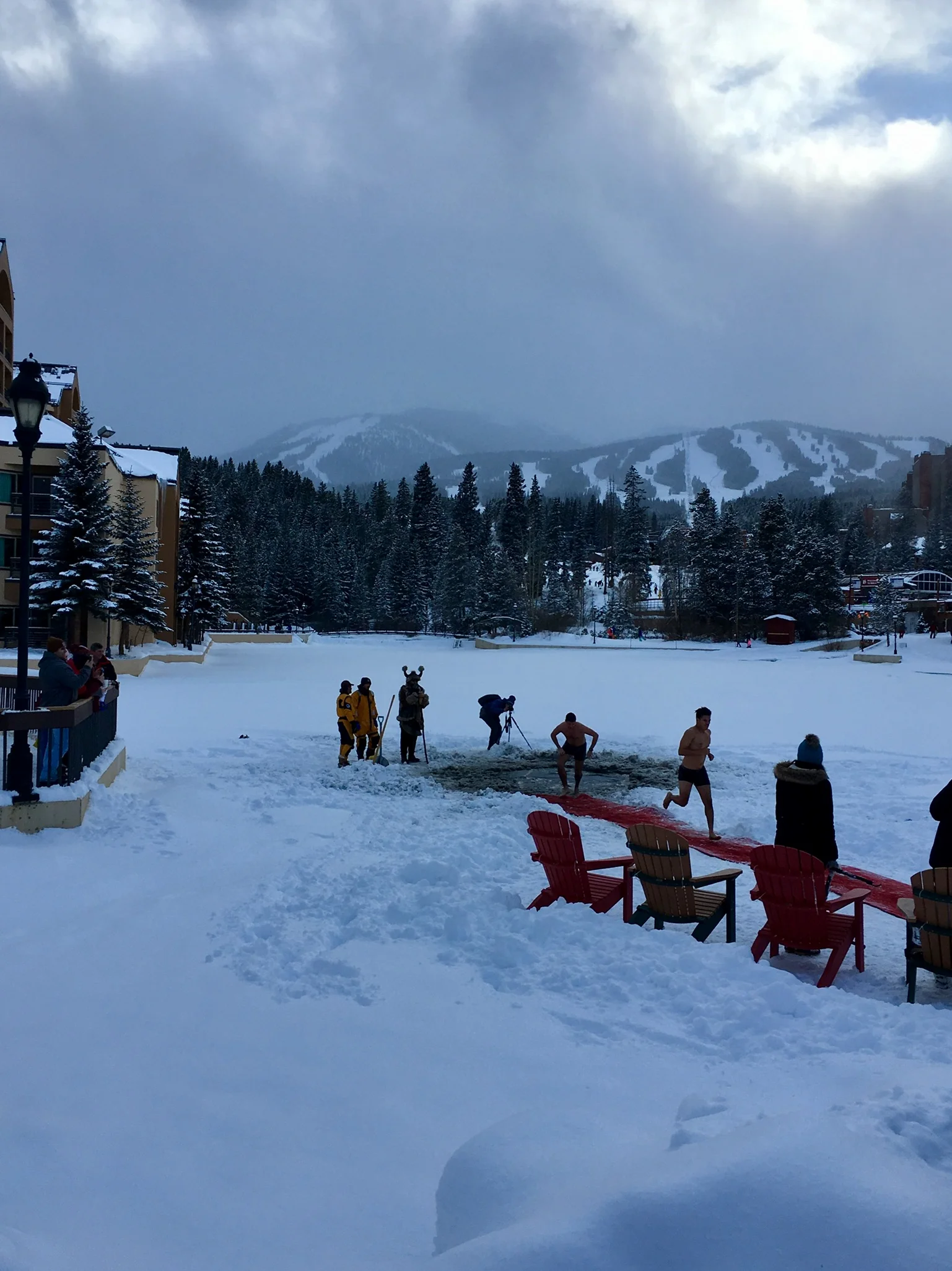 After our first morning of skiing, Mike and I walked down to witness the polar plunge into a small pond in town! People take the plunge to appease Ullr in the hope for more snow. We opted for a hot tub plunge instead.